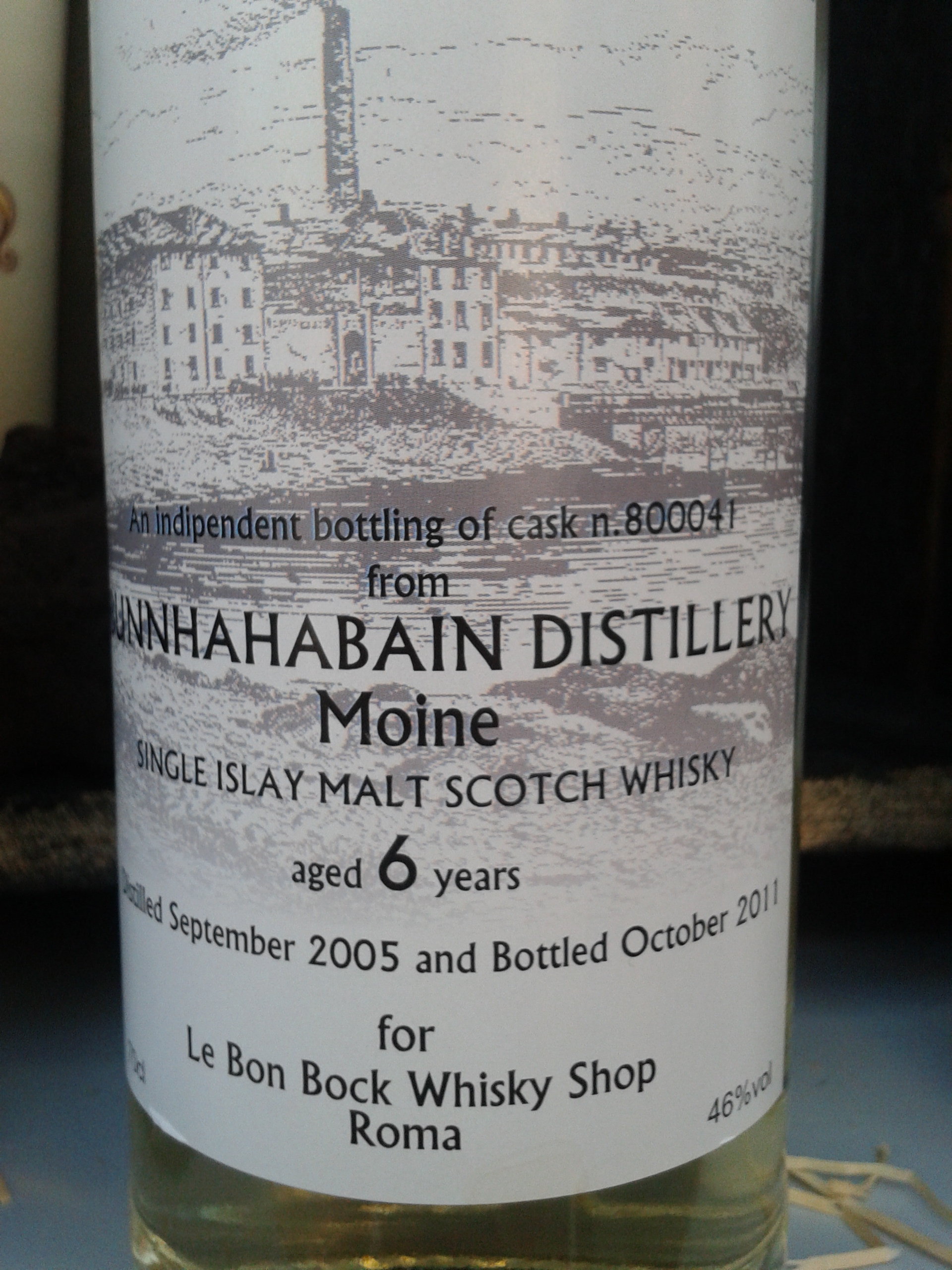 Allo scorso festival romano Spirit of Scotland abbiamo avuto il piacere di conoscere i ragazzi di Le Bon Bock, storica attività della Capitale divisa tra negozio e whisky bar / birreria: la loro ospitalità (culminata, per quel che ci riguarda, in una deliziosa cena scozzese in compagnia del gotha del whisky italiano) è stata davvero squisita, come potete leggere nel resoconto di Davide. Stefano, Francesco e Tiziana gestiscono quello che davvero può definirsi il tempio del whisky romano, e se vi capita di passare da lì, fateci un salto, anche solo per bere un buon dram e ammirare la collezione esposta nel pub. Tra le bottiglie aperte al festival, ci ha colpito un loro imbottigliamento di un giovanissimo Bunnahabhain, malto di Islay, generalmente non torbato e generalmente invecchiato in botti ex-sherry: questo, invece, dovrebbe essere un prodotto a suo modo eccentrico… Il colore è paglierino chiarissimo, quasi bianco: ah, la gioventù!