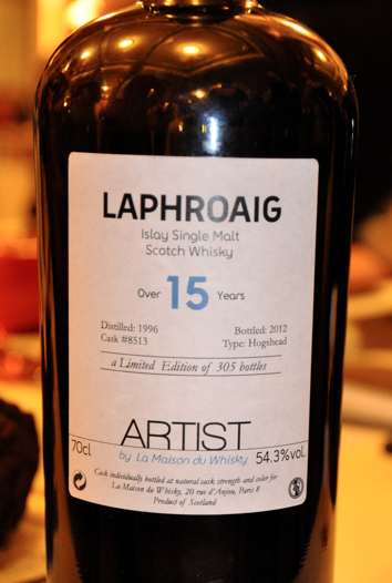 Il negozio francese La Maison Du Whisky è il principale ‘spacciatore’ del nostro amato distillato nella nazione che abbiamo appena schiaffeggiato al Sei Nazioni di rugby; offriamo un beffardo calumet della pace sotto la forma di un bel dram, nello specifico di un Laphroaig 15 anni, distillato nel 1996 e riposato per 15 anni e poco più nella botte ex-bourbon #5803 ed imbottigliato proprio dalla Maison du Whisky (che, ricordiamolo per i più distratti, sta dietro al Whisky Live di Parigi). Questo Laffy, che come prevedibile ci è stato gentilmente offerto da Claudio Riva di laphroaig.it, fa parte della serie “The Artist”: si tratta di whisky imbottigliati in collaborazione con Signatory Vintage e impreziositi da etichette disegnate dal giovane artista di Singapore Warren Chang. Il colore è ambrato, ma molto chiaro.