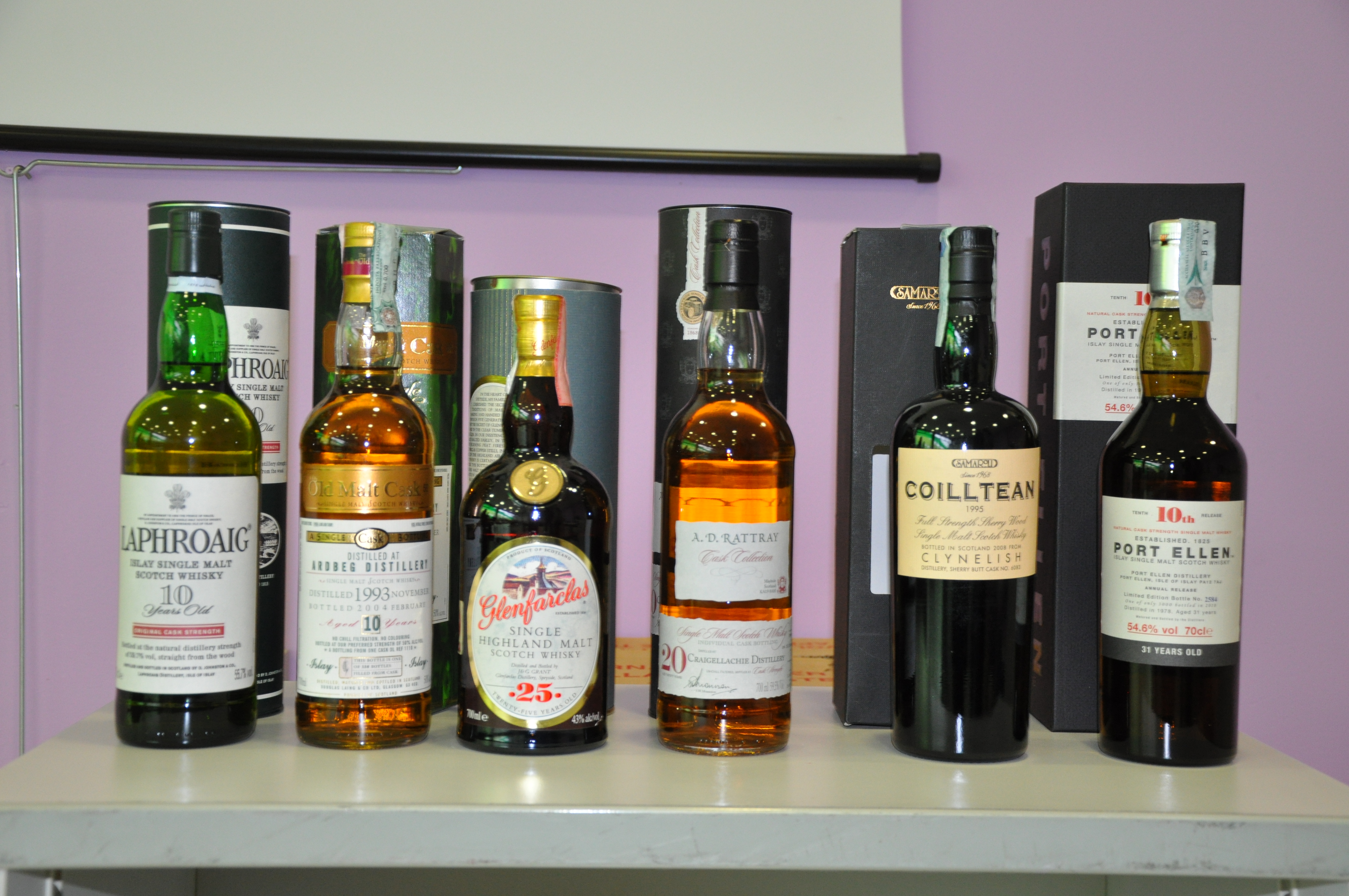 DSC_0041Ma tuffiamoci a pesce nei whisky: il primo assaggio è stato un’esclusiva assoluta, ovvero un undici mesi in bourbon di Puni, ovvero l’invecchiamento – per ora – massimo della neonata distilleria altoatesina. Mi è piaciuto, debbo dire, rispetto agli imbottigliamenti fin ora proposti assomiglia di più – ovviamente – al whisky che sarà; la gradazione piena di certo ha aiutato. Poi, questo il parterre: Craigellachie Rattray 20 anni (1991-2011), Glenfarclas 25 anni ufficiale, Clynelish della serie Coilltean di Samaroli 1995-2008 in sherry, il Port Ellen ufficiale 10th release, 31 anni (1978-2010), Ardbeg 10 anni (1993-2004) imbottigliato da Douglas Laing nella serie Old Malt Cask, ed infine il Laphroaig 10 anni Cask Strength, l’ultimo precedente l’era dei batch, imbottigliato a 55,7%. Bando alle ciance, eccoci alle tasting notes, come sempre in questi casi più brevi del solito e impreziosite dai suggerimenti dei presenti.