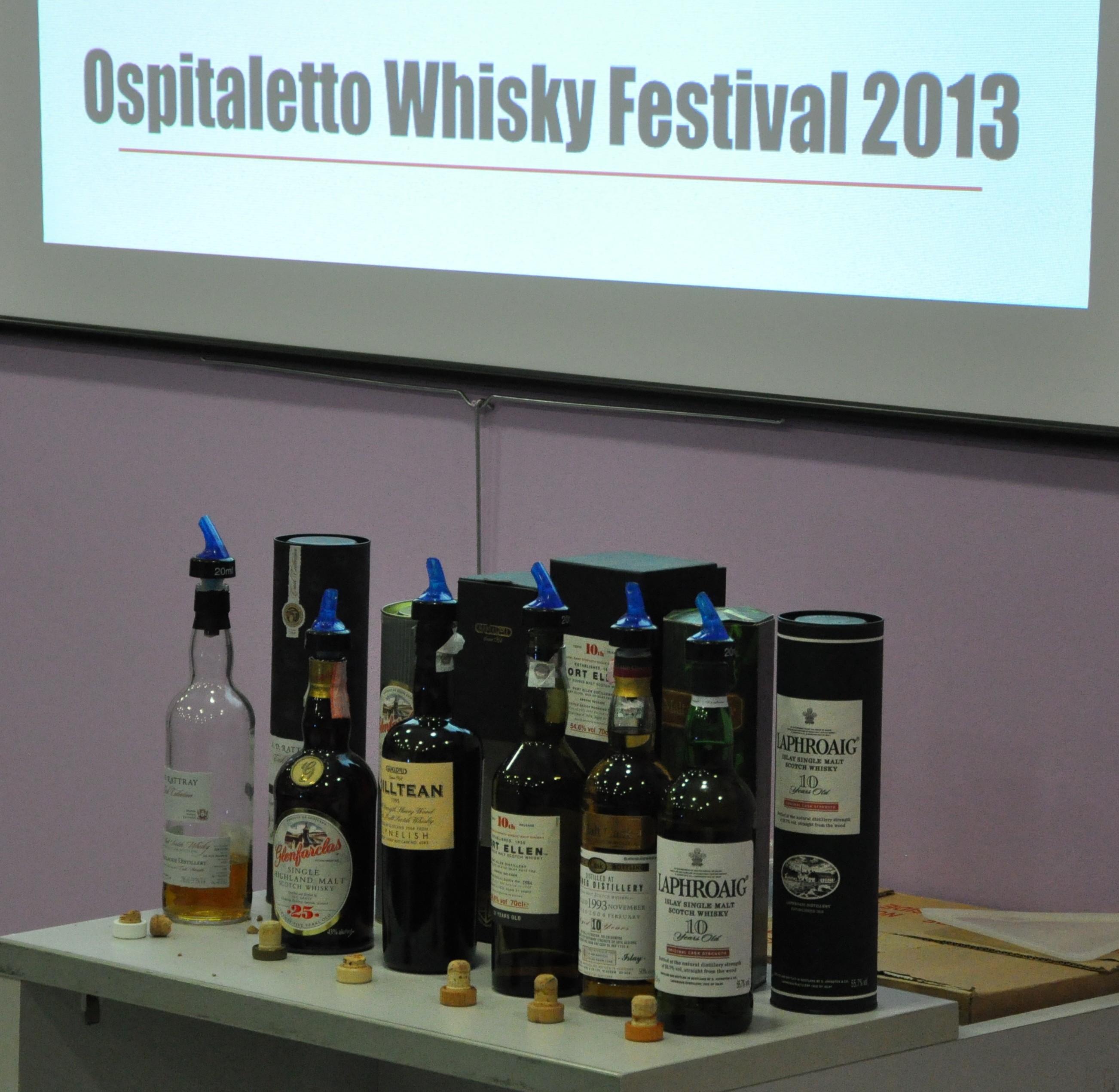 DSC_0006Il 2013 del whisky si è ufficialmente aperto sabato scorso, con la terza edizione dell’Ospitaletto Whisky Festival, convention nazionale (così c’era scritto, così era) del forum singlemaltwhisky.it; whisky facile non poteva mancare, con una delegazione limitata ma impreziosita da un’acconciatura più che discutibile e da un hangover sconfitto solo faticosamente e a colpi di malto. Gli impeccabili padroni di casa Gian Paolo e Dameris hanno approntato per tutti i presenti un programma eccellente: ampio aperitivo con abbondanza di carne di maiale, formaggi e grassi saturi, annaffiato da quattro birre del birrificio artigianale Fratelli Trami (chi scrive non capisce nulla di birra ma ha molto apprezzato la weiss Col De Serf e la bruna Grostè), il tutto seguito dal tasting vero e proprio, con sei malti di specchiata nobiltà presentati dalle sapienti parole di Claudio Riva e Davide Terziotti. Prima di entrare nel dettaglio dei whisky, nel salutare tutti gli amici che si sono ritrovati mi permetto una menzione speciale per Monica del team-Sacile, che eroicamente ha abbandonato a casa marito e figli malati per raggiungerci da sola in treno e che mi ha omaggiato di un sample di Port Ellen 19 anni Hart Brothers… Chapeau. Altra menzione d’onore, ça va sans dire, per il Ciambellone.