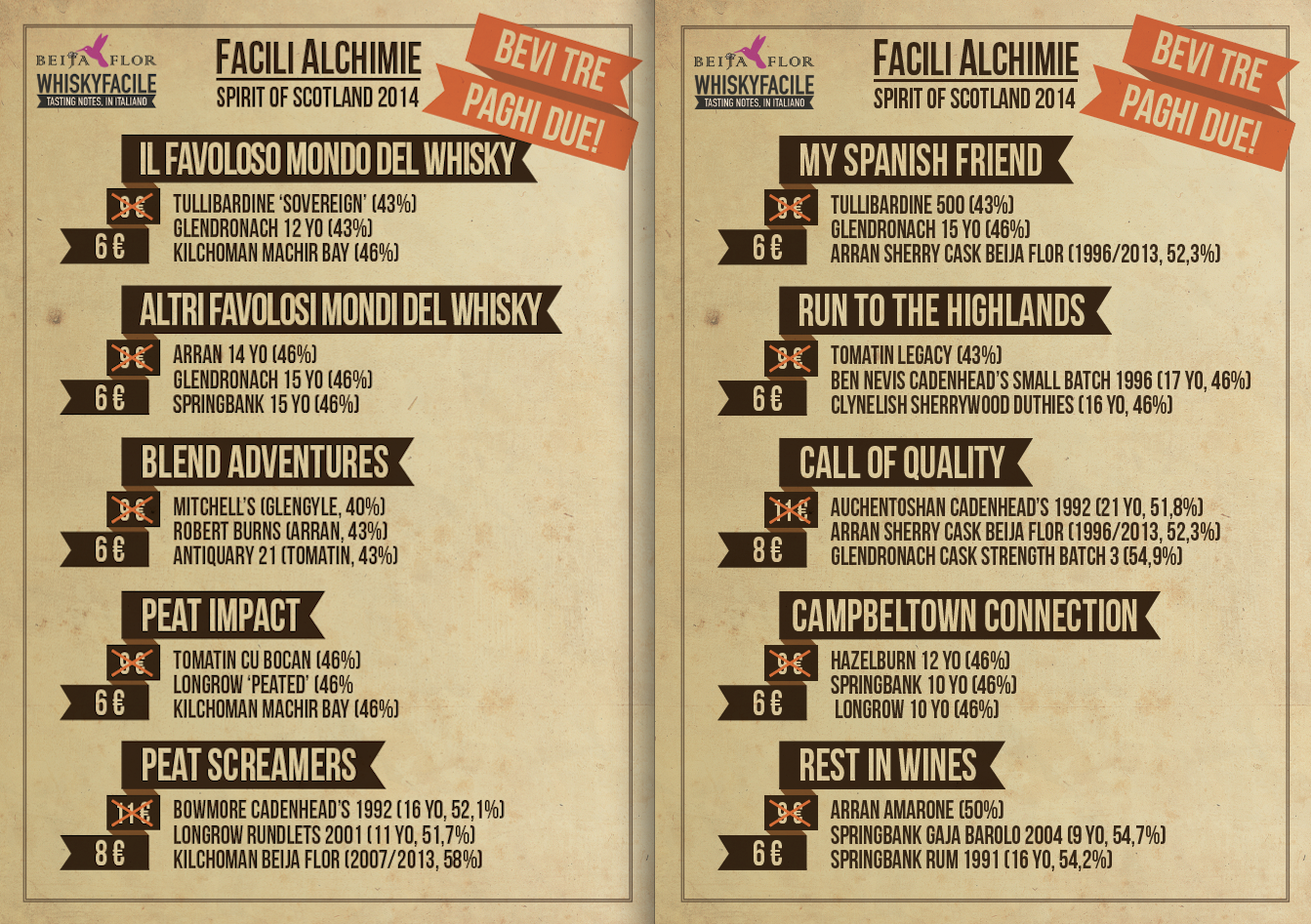 L’attesa per la terza edizione dello Spirit of Scotland, il festival romano del whisky, è agli sgoccioli e i barbari già premono alle porte dell’Urbe brandendo assetati i calici. La calata di whiskyfacile quest’anno punterà dritto dritto verso lo stand di Beija Flor, che ci darà la possibilità di replicare quanto fatto al Milano Whisky Festival: abbiamo scelto, nel portfolio dell’importatore (Cadenhead’s, di Kilchoman, GlenDronach, Tomatin, Glenglassaugh, Tullibardine, Arran, Springbank…), alcuni mini-percorsi di degustazione, proposti a prezzi a dir poco popolari. Non ci dilunghiamo, ecco qui sotto i vari programmi: se avete voglia, fate un salto a trovarci!