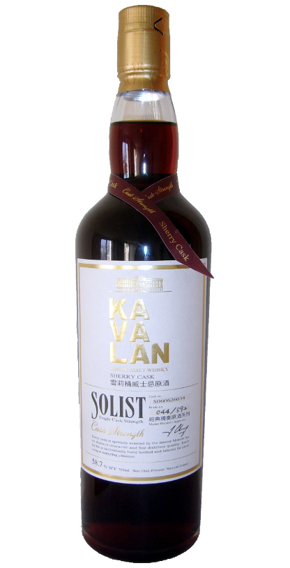 Kavalan è una giovanissima distilleria taiwanese (attiva dal 2006), che negli ultimi anni sta facendo la parte del leone ai più importanti festival di whisky del mondo, Milano e Roma compresi. Lasciamo alle sempre impeccabili parole di Claudio un’approfondita descrizione introduttiva della distilleria, molto interessante a vari livelli; noi oggi mettiamo il naso su una versione di “Solist” (la serie di single casks della distilleria), nello specifico la botte di sherry (Oloroso?) numero S060626034. L’importatore europeo è – indovinate un po’? – La Maison du Whisky, specialista nella diffusione dei malti asiatici in Italia. Il colore è rosso rubino, intensissimo.