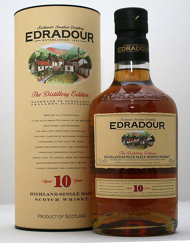 Edradour is the smallest distillery in Scotland; its dimentions reflect its fame, if it’s true that most of the whisky aficionados are not great fans. Let’s remember that a famous personality who organizes whisky festival in Milano (ehm… no names, eh) said “I never had a decent Edradour”. Rumors said that when Signatory Vintage bought the distillery from Pernod Ricard in 2002, they were amazed by the low quality of the distillate: and with them the many people that bought a bottle of those years… Pernod used it to “fatten” their blended, while Signatory produces only distillate for single malt, so we guess they had quite a lot to do. We noticed that on the site an Edradour was never reviewed, so here we are, let’s test the official 10 years old.