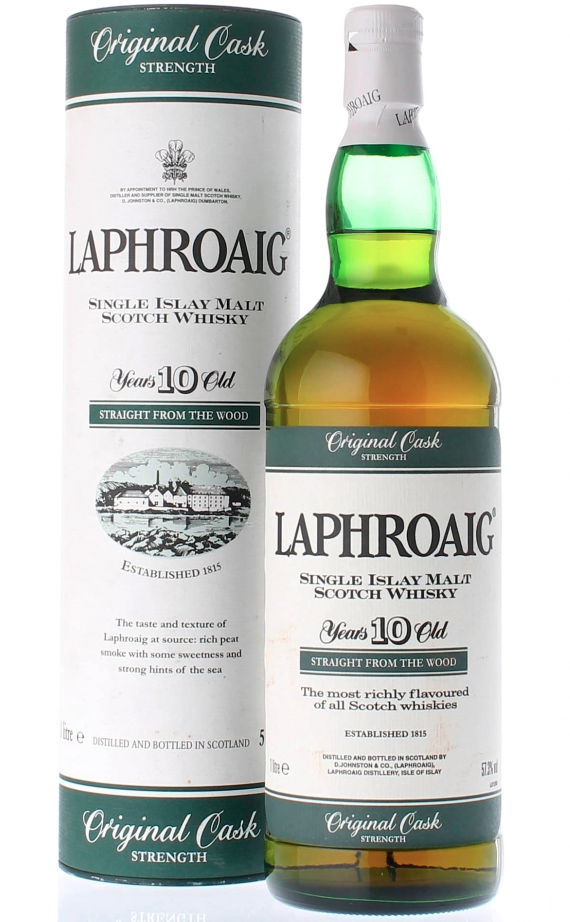 Laphroaig è una delle ‘distillerie torbate’ più amate in Italia: di certo, responsabile di questo amore è il 10 anni ufficiale, che si trova in tanti supermercati e che però, soprattutto negli ultimi tempi, gode spesso di ‘cattiva stampa’, come altre espressioni ufficiali. Persino alcuni insospettabili di recente hanno avuto modo di mettere in discussione l’indiscutibile, ovvero la qualità del proprio malto-feticcio (e non solo quello, va da sé: leggete ad esempio le sempre valide parole di Claudio). Ma qui, oggi, abbiamo la grande capacità di gridare di gioia infinita e godere del vantaggio incredibile di assaggiare la prima versione del 10 anni ‘Cask Strength’ (ovvero imbottigliato a gradazione piena, così come esce dalla botte), quella storica con la striscia verde sull’etichetta.