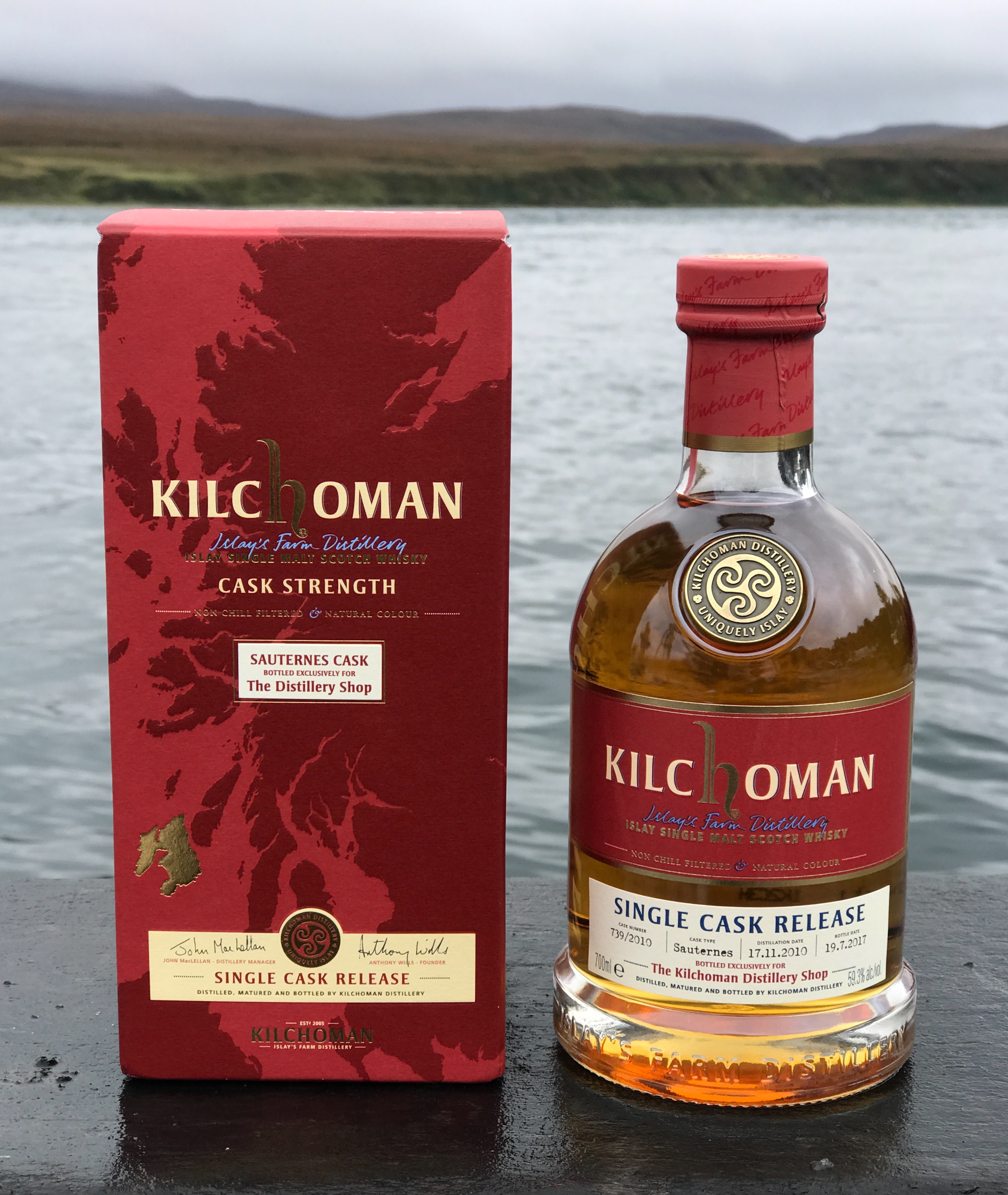A Kilchoman sono mesi di grandi cambiamenti e di grandi lavori: la produzione sta raddoppiando, gli alambicchi stanno per diventare quattro, sono stati costruiti un nuovo malting floor e un nuovo kiln, già attivi, c’è una nuova warehouse… Insomma, si lavora e si fatica: noi abbiamo fatto da poco un salto sull’isola per verificare lo stato dell’arte, e tra una domanda e un assaggio ne abbiamo approfittato per fare acquisti. Come in ogni visitor centre che si rispetti, anche Kilchoman ha in vendita un single cask in esclusiva per i turisti e gli appassionati che si spingono fino a questo luogo remoto: in questo momento c’è il barile 209/2012, un whisky distillato nell’aprile 2012 (con orzo di Port Ellen, dunque a 50ppm) e messo in bottiglia nel settembre 2017 dopo un passaggio di quattro mesi in una botte ex-Sauternes. Un paio d’anni fa, Kilchoman aveva già messo sul mercato un’edizione limitata maturata in Sauternes, anche se in quel caso si trattava di una full maturation e non un finish.