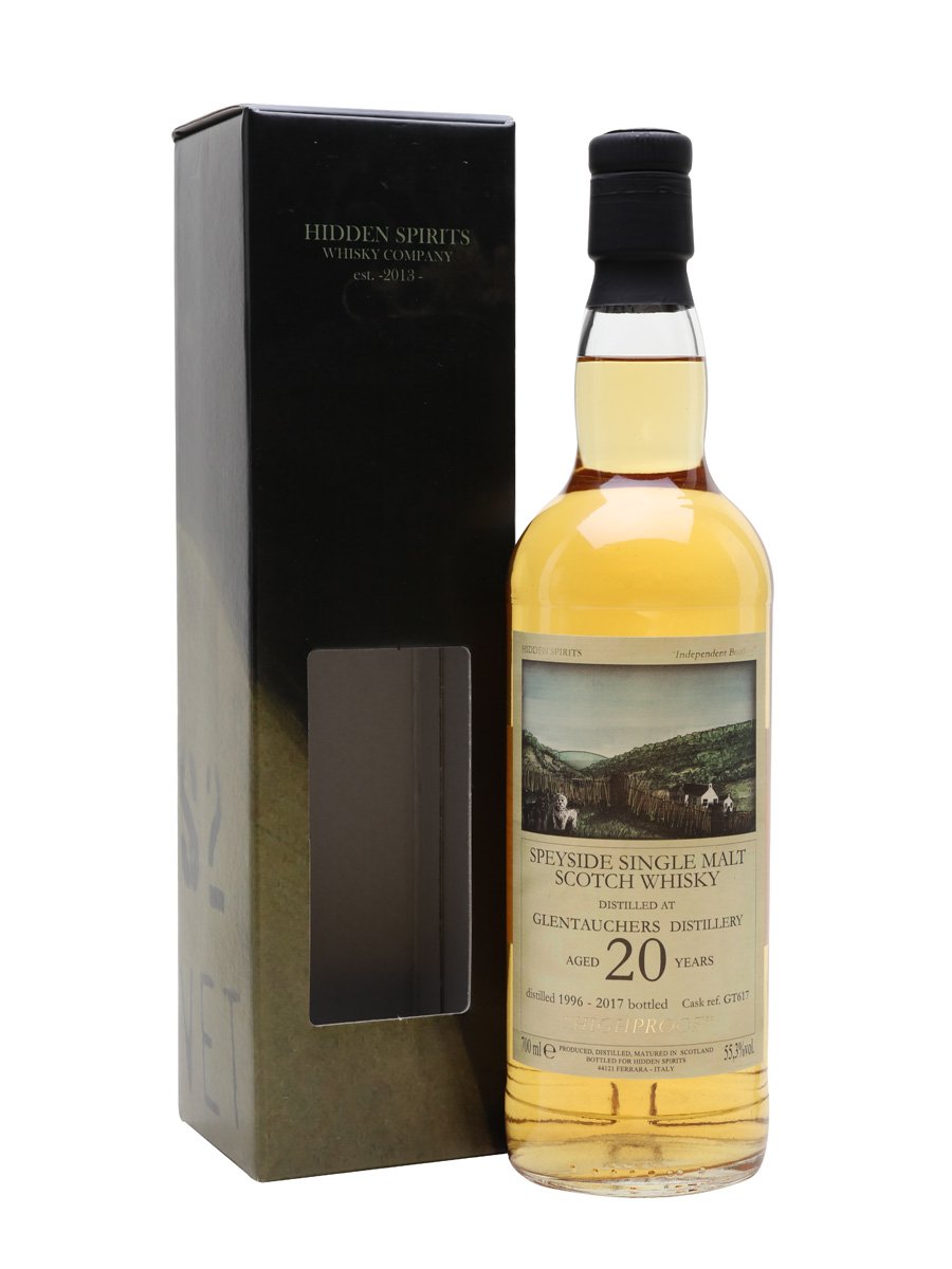 Ultimamente compaiono molti Glentauchers sul mercato: è l’ennesima distilleria dello Speyside poco conosciuta, con una ricca storia di lavoro nell’ombra, per il mercato dei blended, ma che sa regalare piccole perle a chi ha voglia di cercarle. Uno di questi esploratori è il caro Andrea Ferrari, ex-blogger ed ora imbottigliatore indipendente (lui sì che ha fatto carriera, mica come noi!) con il marchio Hidden Spirits, sempre più presente sugli scaffali dei negozi specializzati in giro per il mondo. Si tratta di un barile ex-bourbon maturato per 20 anni.