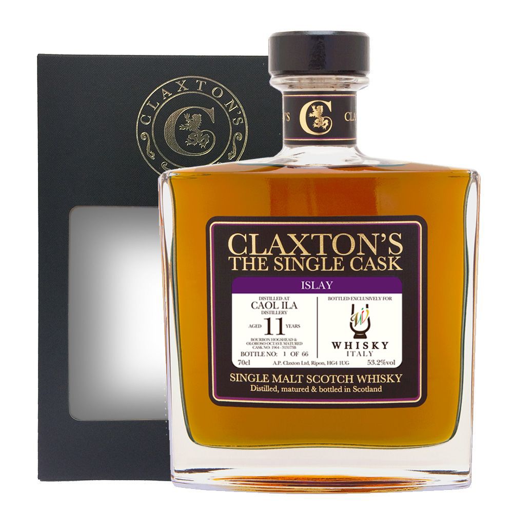 Come sapete, Whiskyitaly importa Claxton’s da qualche anno: dopo una proficua collaborazione, i Malaspinas hanno deciso di portarsi a casa un barile e di imbottigliarlo con il proprio marchio in etichetta… Come al solito noi arriviamo in grande ritardo, ma pur sempre arriviamo: lasciamo la parola proprio a Whiskyitaly per introdurre adeguatamente la botte. “Il Caol Ila 11 Years Old Claxton’s Single Cask per Whisky Italy è stato distillato nel 2008 dalla distilleria Caol Ila dell’isola di Islay e ha passato 10 anni e 8 mesi in una botte ex-bourbon prima di ricevere 7 mesi di ulteriore affinamento in una botte octave (da circa 80 litri) ex-sherry Oloroso. Ovviamente a noi di Whisky Italy non piace fare le cose banali e quindi oltre ad essere una botte octave ex-sherry refill, prima di essere riempita con il nostro Caol Ila aveva contenuto del single malt di Ledaig, un altro whisky torbato!” – insomma, mica male, eh?