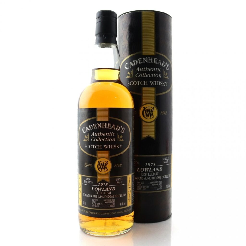 Via via via, dai dai dai, non c’è tempo da perdere, carpe diem ma anche orate diem, alborelle diem e triglie diem: bisogna recensire figate, abbiamo atteso anche fin troppo. E dunque dopo il Littlemill rimaniamo nelle Lowlands e rimaniamo in una distilleria amaramente chiusa nel 1983. Oggi, alcuni degli edifici sono stati convertiti a strutture residenziali e hanno mantenuto i tetti a pagoda. Prima di cercare su immobiliare.it quanto vengono al metro quadro gli appartamenti a St. Magdalene, assaggiamo questo 23 anni della serie Cadenhead’s Authentic Collection. Un curioso bourbon butt ha dato 618 bottiglie. Il colore, tanto per cambiare, è oro.