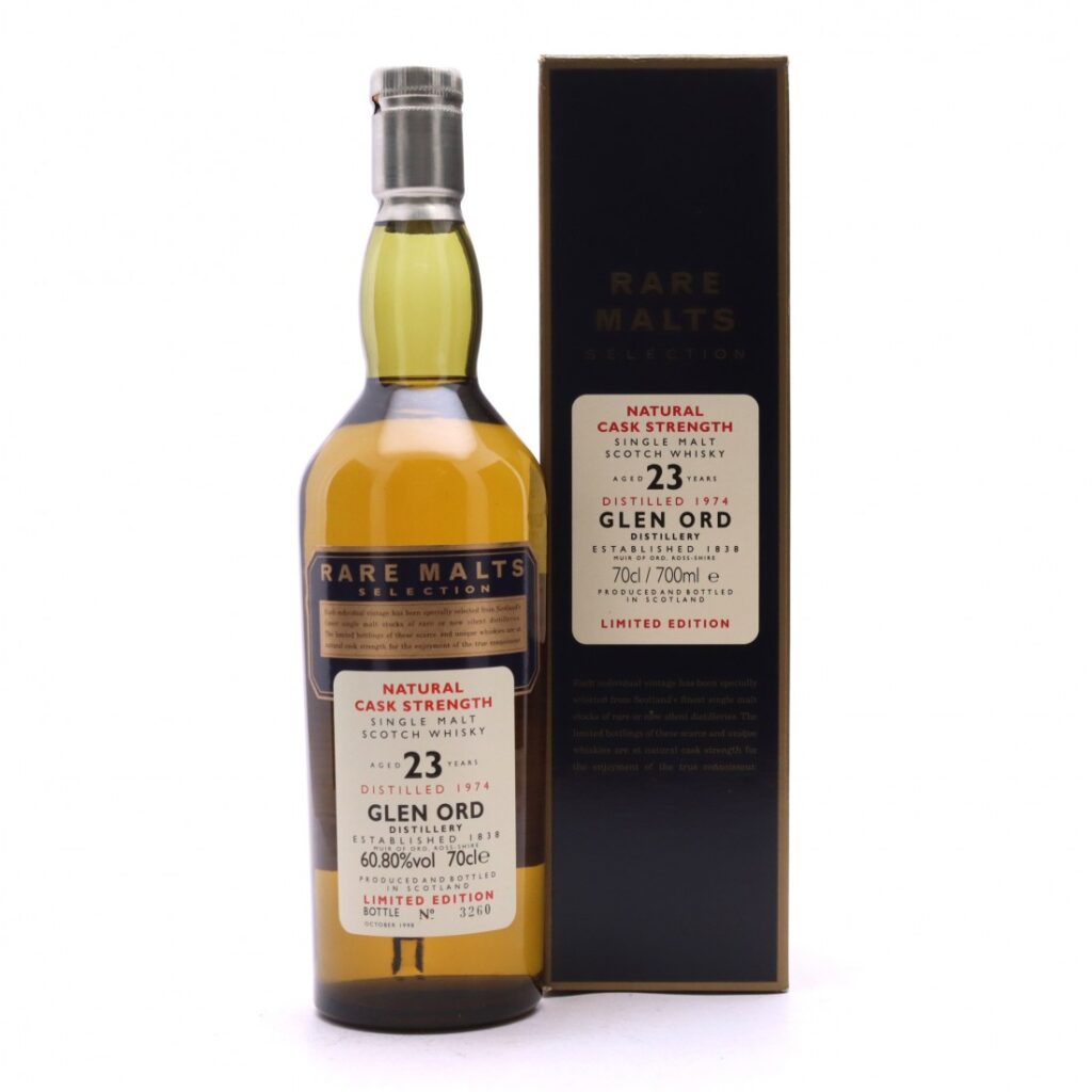 Da anni per noi “Rare malts” è sinonimo di Harp Pub, la “tana” in zona Città studi a Milano dove andiamo a nasconderci quando vogliamo recensire in santa pace facendoci due chiacchiere, tre risate e quattro birre con Angelo e suo figlio Ricky. Angelo (Corbetta: un po’ come Bond, James Bond) è un grande appassionato e collezionista e spesso insieme abbiamo fatto fior fior di degustazioni con la serie Rare Malts che Diageo ha buttato sul mercato ormai diversi lustri fa. All’interno di questi imbottigliamenti, tanto rari quanto a grado atomico, c’era anche un Glen Ord, una distilleria che come ben sapete non è frequentemente recensita su questo blogghettino. Ed è un peccato, perché l’ultima distilleria presente sulla Black Isle – che ovviamente non è un’isola ma una penisola – è un caso interessante. Nonostante produca 11 milioni di litri di whisky all’anno, non se la fila nessuno, perché il malto finisce soprattutto nel Johnnie Walker e di single malt ne esce pochino, tutto sotto la super-etichetta Singleton. Peccato, perché il distillato ha qualcosa di unico. Il colore di questo, nella fattispecie, è un paglierino chiaro.