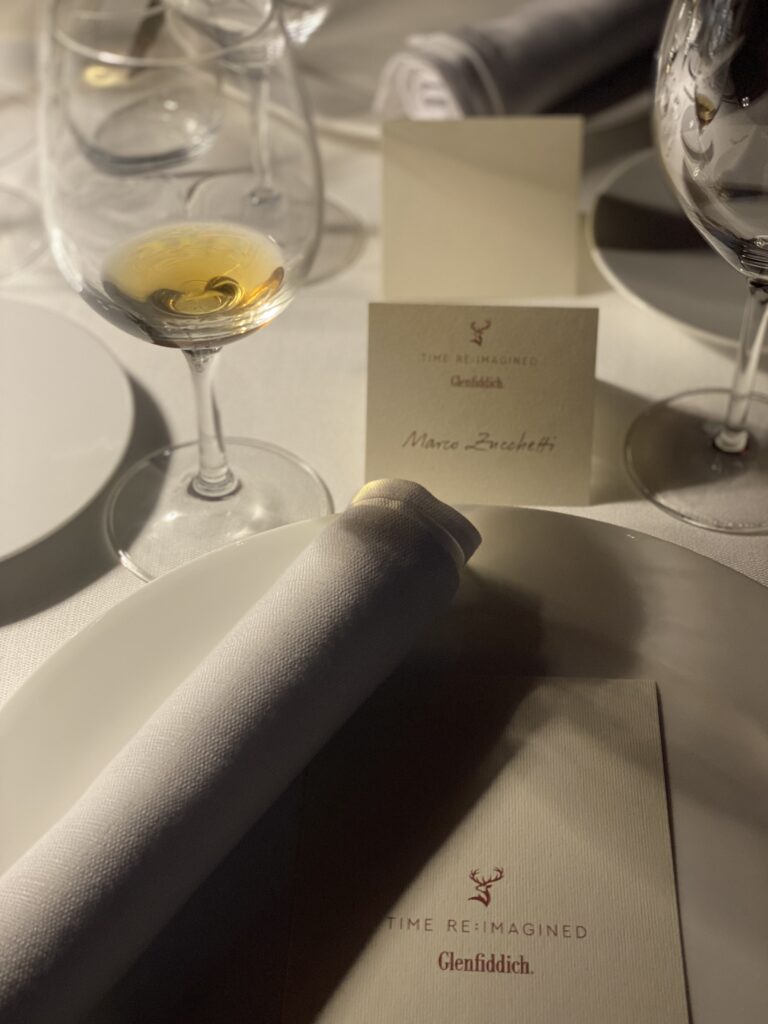 Ottocentocinquanta bottiglie prodotte e solo sei Italia (seimila euro il costo). O meglio ce n’erano sei, ma dopo la serata di lancio per influencer e giornalisti assetati sono sicuramente meno, dato che di questo Glenfiddich 40 anni ne sono stati versati svariati bicchierozzi. Dopo il 30 anni, chiudiamo così il duetto di recensioni sulle nuove releases della serie “Time Re:Imagined”, con cui gli esperti di marketing (e filosofia) del gruppo William Grant hanno voluto riflettere sul senso dello scorrere del tempo nella produzione di single malt. Proustianamente, in questa specie di Recherche liquida, ognuno dei tre imbottigliamenti coglie un aspetto particolare. Il 40 anni è dedicato al “tempo cumulativo”, che a dire il vero come espressione fa abbastanza rabbrividire, ecco. Però è interessante il metodo produttivo chiamato “remnant vatting”. In pratica, le rimanenze dei vatting precedenti vengono miscelate con i barili utilizzati, quasi come in una solera. La confezione è in jesmonite, che – leggiamo su Google – “è un sistema bicomponente formato da un lattice acrilico e da una polvere cementizia”. Tenetevi il Piccolo Chimico, versatecene un altro. Il colore è oro zecchino.