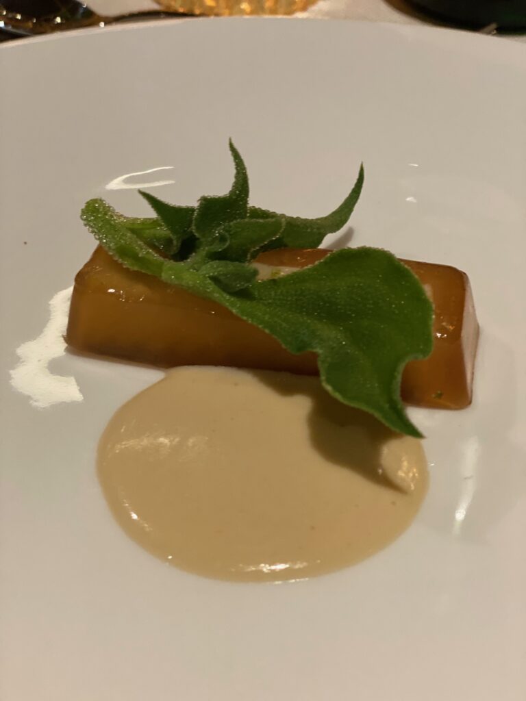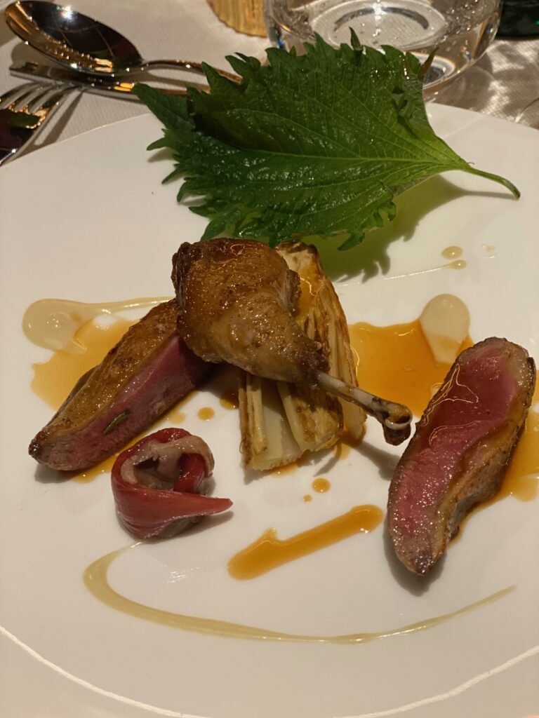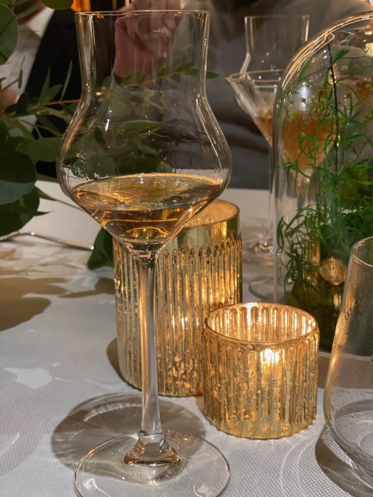 Il nostro epicureismo ci impone di snocciolarvi il menu: aspic di anguilla al té Lapsang Souchong; riso ai porri, limone e caffè; piccione in casseruola con cardo gobbo e bagna cauda al cioccolato bianco (da estasi mistica); dolce al cioccolato e bottarga. Per vostra informazione, abbiamo mangiato tutto come bravi bambini a cui la nonna impone di finire il piatto. Ecco, i cocktail se possiamo fare i precisini non erano memorabili. Ma siccome non siamo un blog di cucina né di mixology, ora vi diciamo com’era il whisky, che invecchia in botti ex sherry ed ex bourbon. Il colore è un bell’oro con screziature rosa.