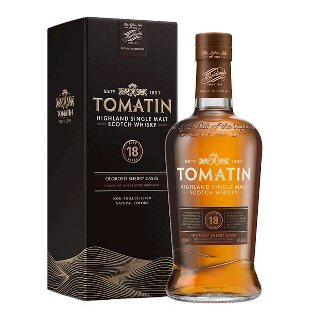 Ve l’avevamo già raccontata la favola del Notaio Corrado e di quando al suo genetliaco comprò svariate bottiglie di whisky di 18 anni per festeggiare? Secondo noi sì, ma perché limitarci a raccontare una sola volta una bella fiaba? Percui, eccoci qui con un nuovo capitolo di quella entusiasmante serata. Dopo Knockando, tocca a Tomatin, una distilleria a cui siamo affezionati perché ci ricorda Maurizio Cagnolati, che con Beija Flor la importava, e perché ci siamo pure stati. E come non amare una distilleria che si vanta di essere “la più brutta della zona”? In realtà, forse non sarà affascinante (spoiler: sembra un capannone di produzione di tondini di acciaio), ma è accogliente e il tour è ben fatto. Ad ogni modo, il 18 anni invecchia in botti di primo riempimento ex Oloroso. Vediamo com’è, il colore è un oro antico.