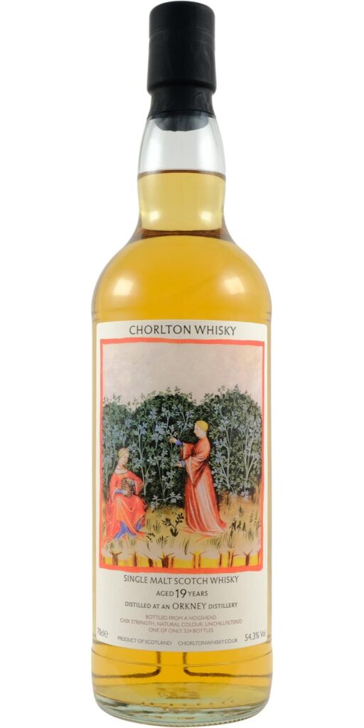 Siamo ancora qua, direbbe quell’epicureo inveterato di Vasco Rossi. E siamo qua a recensire altri Chorlton, come se non ci fosse un domani. Oggi tocca a un Orkney, che ormai è il segreto di Pulcinella (di mare, considerando che parliamo di isole Orcadi): è un Highland Park e finiamola lì. Abbiamo già assaggiato un Orkney più vecchiotto imbottigliato da David e avevamo dato parere entusiastico. Ora vediamo se il fratellino più piccolo è altrettanto buono. Trattasi di hoghsead che ha dato 324 bottiglie, il colore è un oro chiaro.