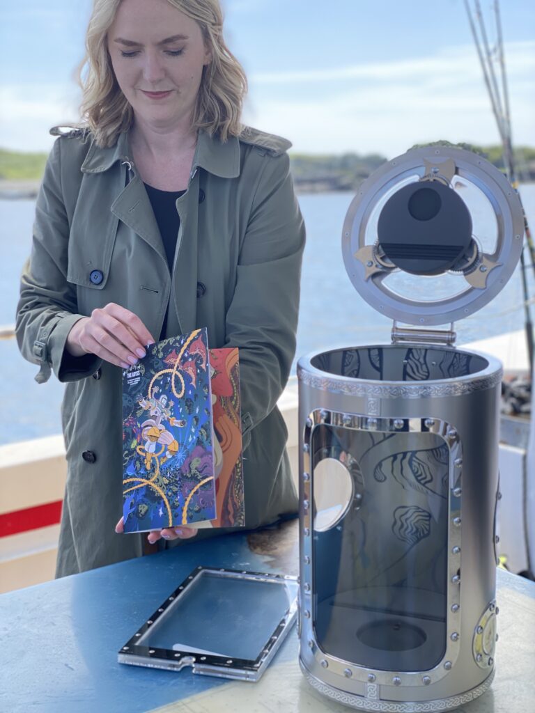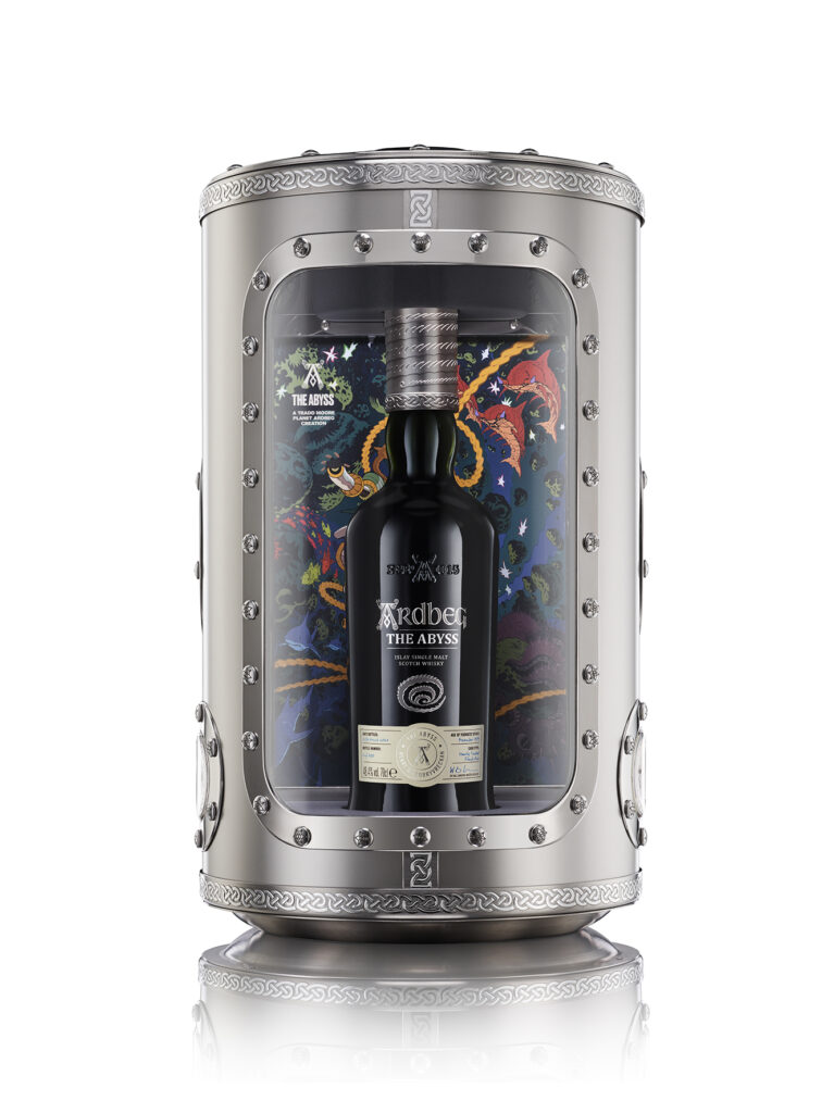 And we come to the second ingredient: the packaging. ‘The Abyss’ is presented in a sort of hermetically sealed opening mechanism scape, reminiscent of space capsules, which took two years of planning and work to make. We will never complain about the cardboard boxes of our bottlings again, we swear….