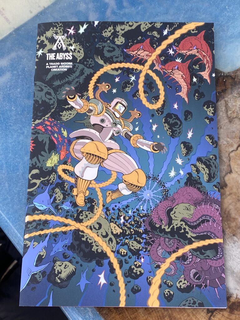‘The Abyss’ starts from here and imagines a new life for our hero. A journey through time and space all the way to Planet Ardbeg, which was put on paper by American comics artist Tradd Moore (pictured below, right). Tradd, having illustrated the most popular Marvel comics, has signed a limited edition of a graphic novel, that comes with the bottle.