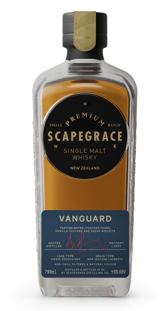 Questa si chiama ‘Vanguard’, è un single malt, è distillato da orzo neozelandese di varietà Laureate e matura in botti di rovere francese vergine. Non filtrato, non colorato e no age statement. Il colore è rame.