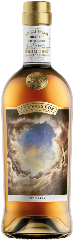“In the box”, come gridano i telecronisti della Premier League quando si tira il pallone in area sperando che un centravanti grande come una cisterna lo inzucchi in porta. E noi lanciamo la penna proprio “in the box”, Compass Box per essere precisi, sperando che uno dei voluttuosi blended di casa ci regali una gioia. ‘Celestial’ è la quarta, ultima e più torbata release della serie Extinct Blends Quartet di Compass Box. Si ispira a un blend degli anni ’60 e contiene whisky di Ardbeg, Caol Ila, Glen Elgin e Old Pulteney. Più ovviamente a vecchi grain (Cameronbridge e Port Dundas). Ne hanno fatte 5532 bottiglie, il colore è paglierino.